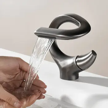 Modern Waterfall Basin Faucet – Gun Gray Brass Bathroom Tap