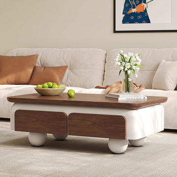 Modern Japanese Wooden Coffee Table with Storage Drawers