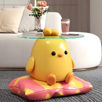 Nordic Animal Cartoon Coffee Table with Round Glass Top – Modern Living Room Accent