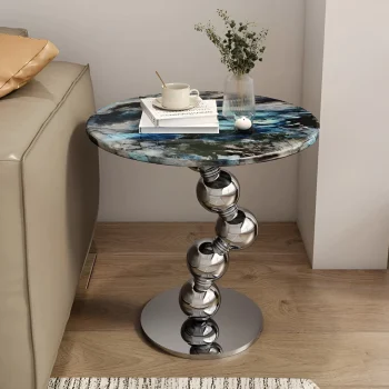 Italian Luxury Round Microcrystalline Stone Side Table – Minimalist Marble Design