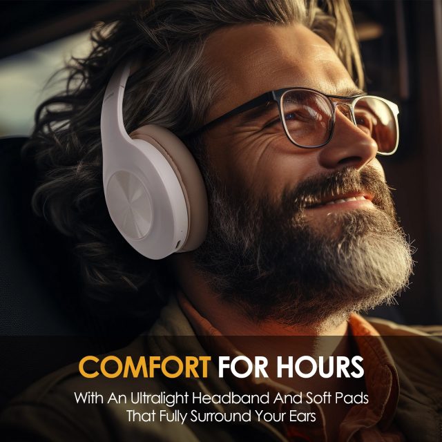 Soft memory foam ear cups and a padded protein-leather headband gently wrap around your ears, creating a comfortable seal without pressure. The adjustable metal headband fits most head sizes, while the foldable design makes these headphones easy to carry in a bag or backpack. You can also switch between wireless and wired listening using the included audio cable whenever you want.