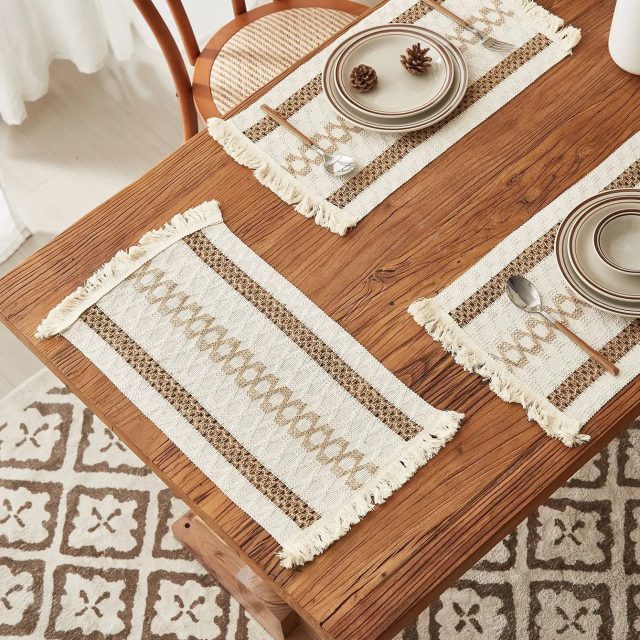 Ready to refresh your table décor? The Woven Tassel Placemats offer a simple yet sophisticated way to dress up your dining space. Not only do they protect your table from spills and stains, but they also bring a chic, rustic vibe that will complement any setting. Get yours today and experience the perfect combination of beauty, durability, and eco-friendliness!