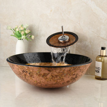 Hand-Painted Art Glass Bathroom Sink with Waterfall Faucet and Chrome Drain