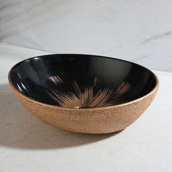 Elegant Hand-Painted Oval Ceramic Basin – Luxury Bathroom Sink