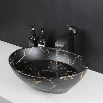 Modern Marble Style Ceramic Vessel Sink Set with Matte Black Faucet