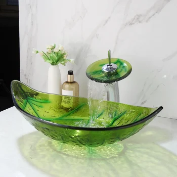 Luxury Tempered Glass Bathroom Sink and Chrome Faucet Set