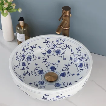 Luxury Blue & White Porcelain Ceramic Bathroom Sink Faucet Set with Pop-Up Drain