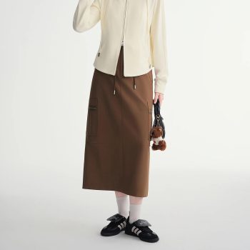 High-Waist Drawstring Mid-Calf Workwear Skirt