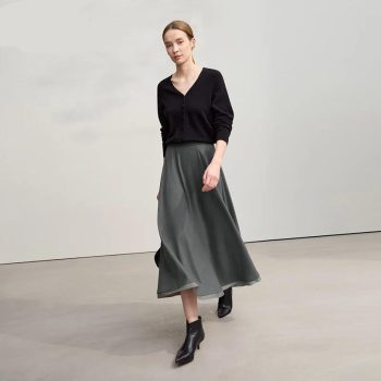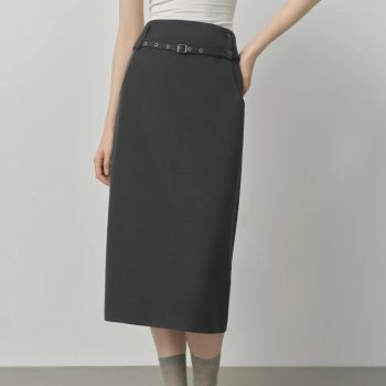 Dark Gray Retro Straight Mid-Calf Skirt for Women