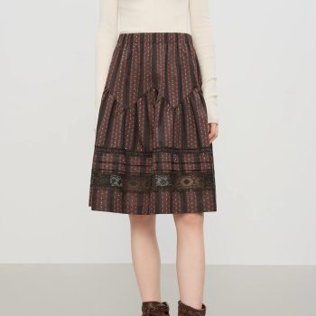 Vintage Lace Trim A-Line High Waist Winter Skirt for Women