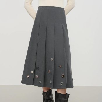 Women’s Academic Pleated A-Line Mid-Calf Skirt with High Waist