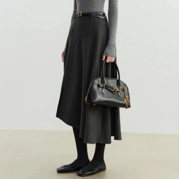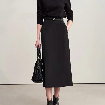 Women’s Winter A-Line Mid-Calf Skirt with Pockets – Minimal Office Style