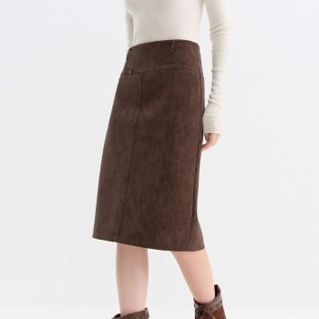High-Waisted Vintage Faux Suede Straight Skirt