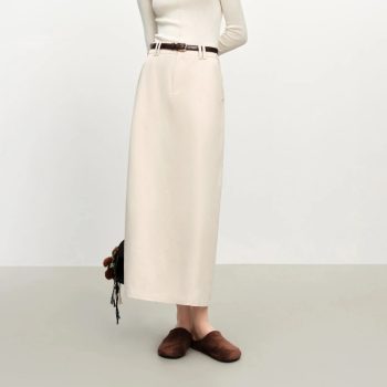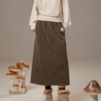 Extra Long Cotton Straight Winter Skirt with Belt for Women