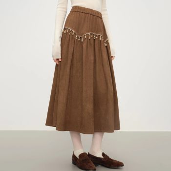 Retro Suede Tassel A-Line Midi Skirt with Elastic Waist for Winter