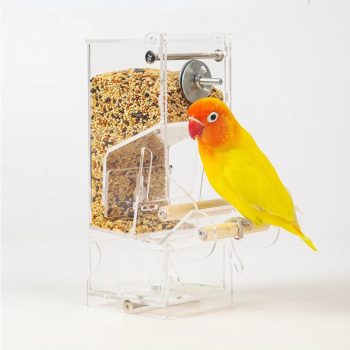 Clear Acrylic Automatic Bird Feeder with Perch for Parrots & Parakeets