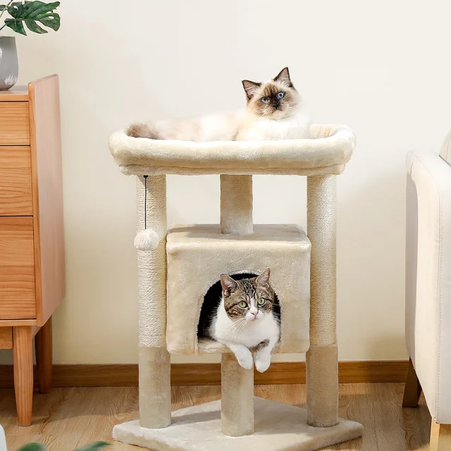 This cat tree is best used indoors, making it ideal for apartments, small homes, or any space where your cat needs vertical fun without clutter. The soft top perch offers a cushioned resting spot, while the enclosed condo creates a warm, quiet retreat for uninterrupted naps. Wrapped in gentle plush fabric, every surface feels inviting and safe for daily use.