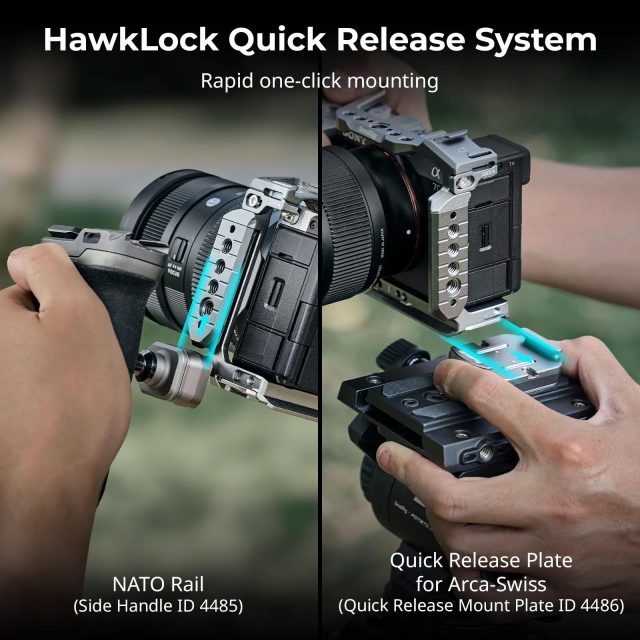 Whether you’re filming handheld, mounted on a tripod, or balancing on a stabilizer, this cage adapts instantly to your workflow. With its innovative HawkLock quick release system, you can attach or detach accessories in seconds—no fumbling, no delays, just pure creative flow.