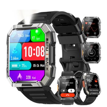 Outdoor Waterproof Smartwatch with Emergency Light and Long Battery Life