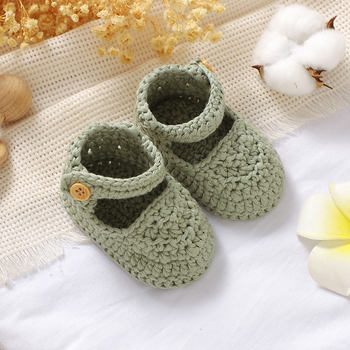 Soft Cotton Knit Newborn Shoes with Buckle Strap (0–18 Months)