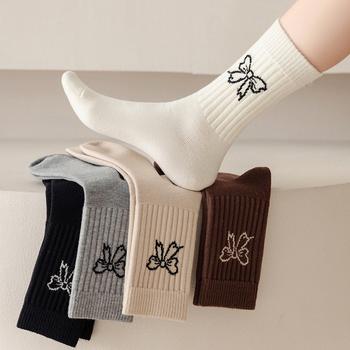 Bow Tie Mid-Tube Women’s Socks – 5 Pair Breathable Casual Set