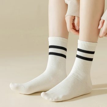Unisex Vertical Stripe Mid-Calf Cotton Sports Socks