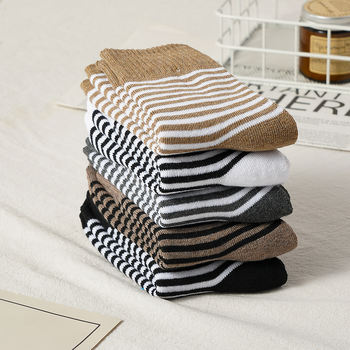 5 Pairs Retro Coffee Striped Mid Tube Socks – Korean Cute College Style