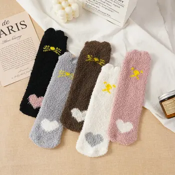 5 Pairs Cute Cartoon Cat Fleece Socks – Soft Warm Cozy Sleep Socks