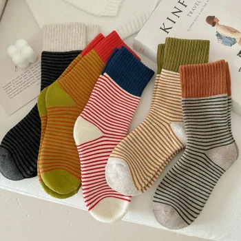 Cozy Striped Tube Socks – 5 Pairs Thickened Terry Knit Comfort