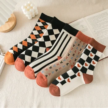 Men’s Winter Cotton Crew Socks – Colorful Check Pattern Business Style