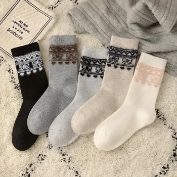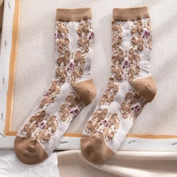 Women’s Vintage Floral Embroidered Warm Cotton Socks – Cozy Winter Style