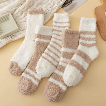 5 Pairs Cozy Winter Plush Striped Warm Sleeping Socks