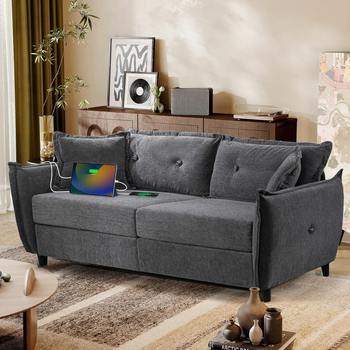 85″ Cloud Couch with USB Ports 3-Seater Grey Sofa for Small Spaces