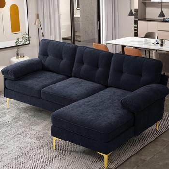 82″ Reversible L-Shape Chenille Sectional Sofa with Chaise Lounge