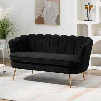 59″ Teddy Fabric Loveseat Flower Back Sofa with Gold Metal Legs