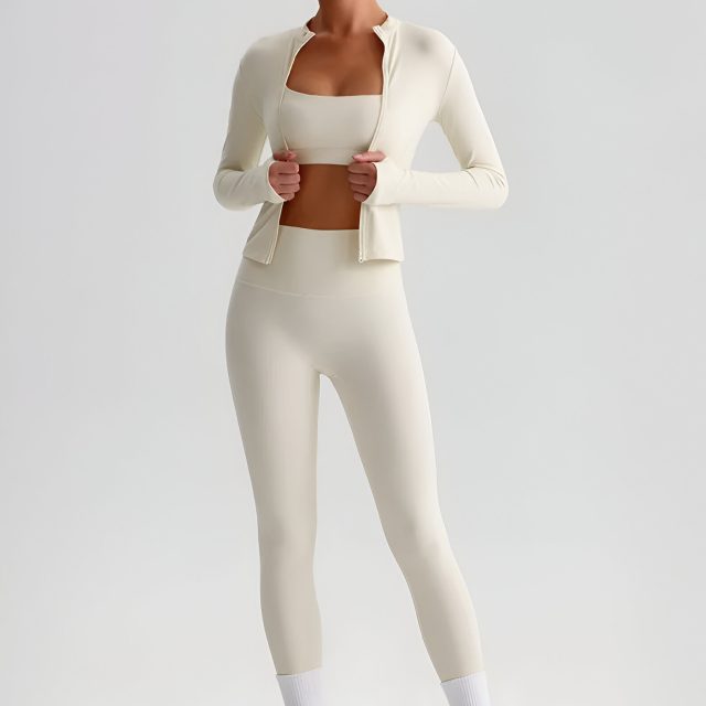 This Solid Color Yoga Set is the perfect blend of style, comfort, and function. Whether you’re looking to enhance your yoga practice or just want a chic outfit for a day out, this set has got you covered. The soft, stretchy fabric ensures a perfect fit and maximum mobility, so you can move with ease. The high-waisted leggings give you extra support and confidence, while the full-zip jacket adds a sporty touch to your look.