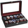 This watch case is built with excellent workmanship from top to bottom. Each interior compartment features plush velvet that gently cushions your watches, preventing scratches and wear. The sturdy metal clasp keeps the box securely closed, while the durable glass lid lets you admire your collection at a glance without opening it. Measuring 8”D x 11.9”W x 3.1”H, it fits neatly on a dresser, nightstand, or shelf without taking up too much space.