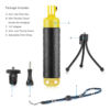 The grip measures approximately 7 in x 1.57 in x 1.57 in, making it compact enough to travel easily yet strong enough for demanding use. It connects to action cameras using a standard 1/4 in socket or mount, letting you pair it with a wide range of popular camera models. The waterproof sealed handle gives you balanced buoyancy in water, helping your device float instead of sinking, while also allowing space to store small essentials such as keys or cash during your adventures.