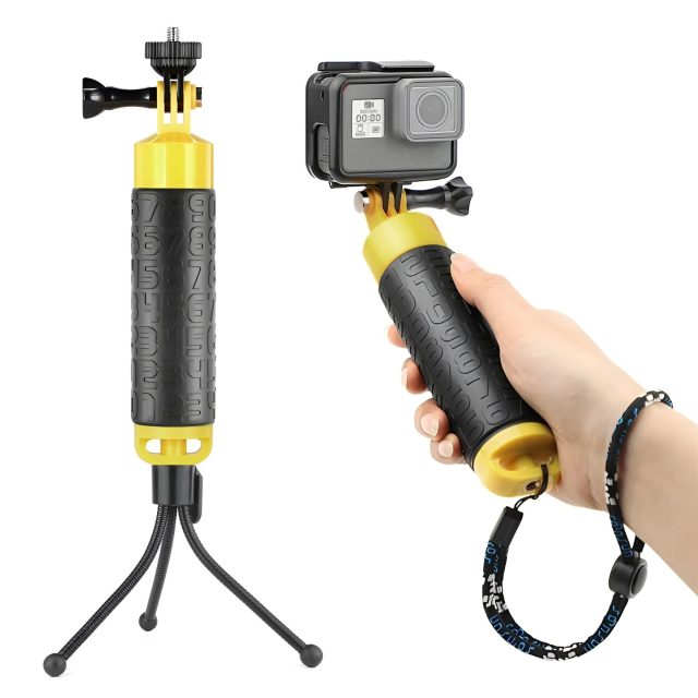 Keep your action camera safe, steady, and always within reach underwater or on land. This waterproof floating hand grip tripod is designed for outdoor enthusiasts who love diving, surfing, kayaking, hiking, or simply recording daily adventures. With its anti-slip rubber handle, integrated buoyant design, and flexible tripod support, it brings stability and peace of mind to every shot. Whether you are diving deep, riding waves, or exploring rugged trails, your camera stays secure, easy to handle, and comfortably gripped at all times.