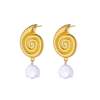Elevate your summer style with these stunning Gold Conch Pearl Starfish Drop Earrings—a perfect blend of seaside charm and modern elegance. Designed for women who love jewelry that feels both expressive and effortless, these earrings feature a beautifully spiral-textured conch design paired with a smooth pearl drop for a touch of ocean-inspired grace. Their warm gold-color plating brings a radiant glow that flatters every skin tone, making them a must-have accessory for vacations, weekend getaways, and everyday wear.