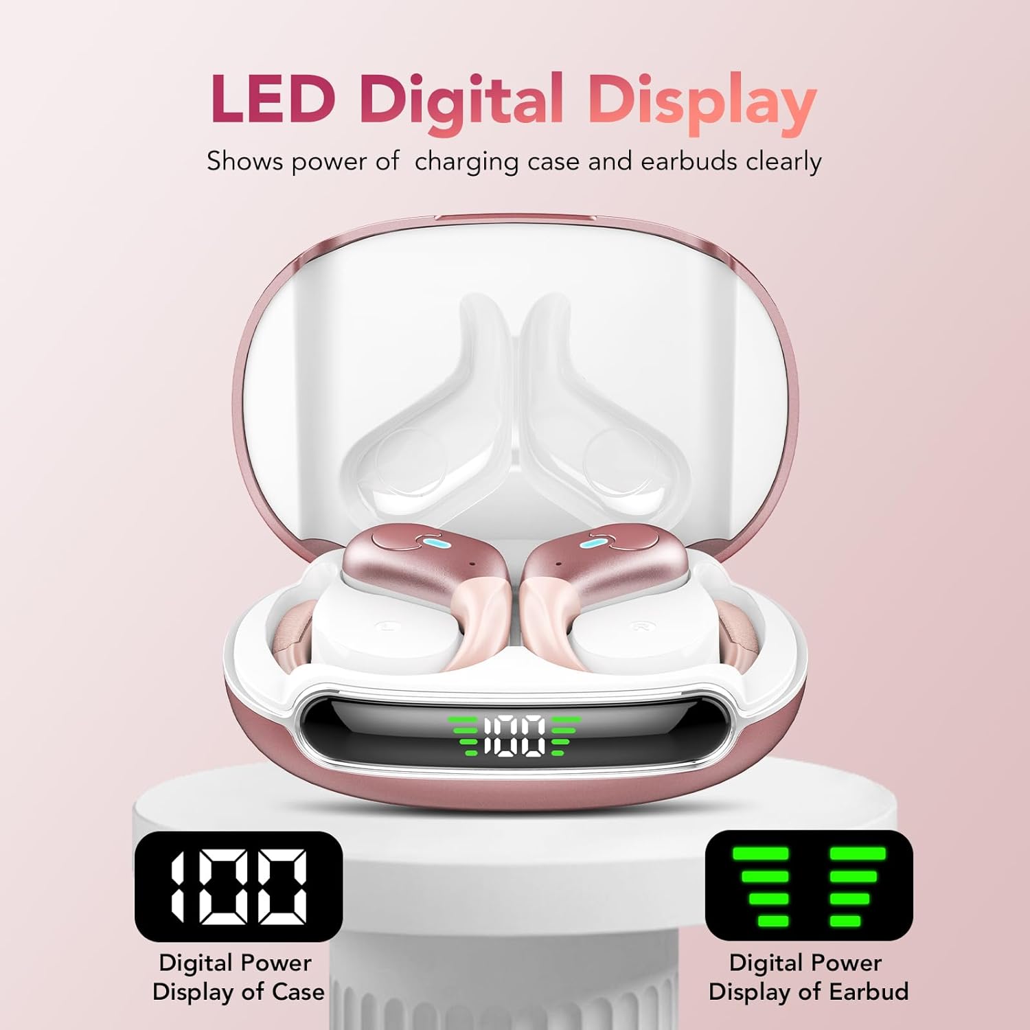 Enjoy up to 10 hours of continuous listening on a single charge, plus an impressive 60 hours total with the charging case. The built-in digital LED display shows real-time battery levels, so you always know when it’s time to recharge. No more guessing, no more sudden power loss during your favorite playlist or call.