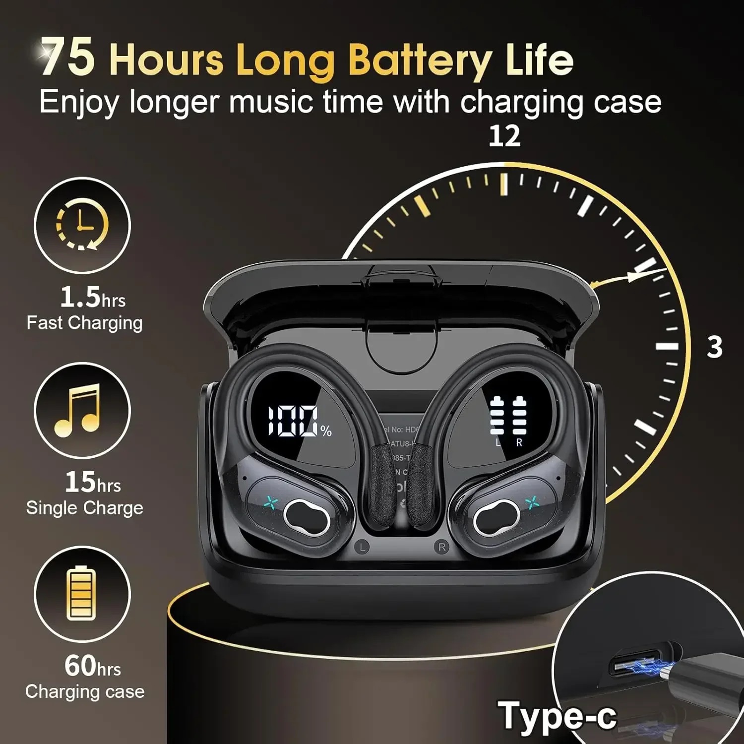 Unleash the ultimate audio experience with our Bluetooth 5.4 Sports Wireless Earbuds. Designed for active individuals, these earbuds combine innovative technology with lightweight comfort, making them perfect for workouts, games, or everyday use. With a robust battery life of up to 75 hours, you can enjoy your favorite music and take calls without the hassle of constant recharging. Its punchy 3D deep bass will elevate your listening experience, immersing you in sound as you move.