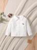 Dress your little one in effortless style with this adorable white cotton shirt jacket designed for babies and toddlers. Featuring a sweet small dinosaur embroidery, this piece blends playful charm with clean, modern fashion. It looks like a shirt, wears like a light jacket, and feels soft enough for all-day comfort. Perfect for active babies who love to explore, this versatile layer is made to keep them cozy without feeling heavy.