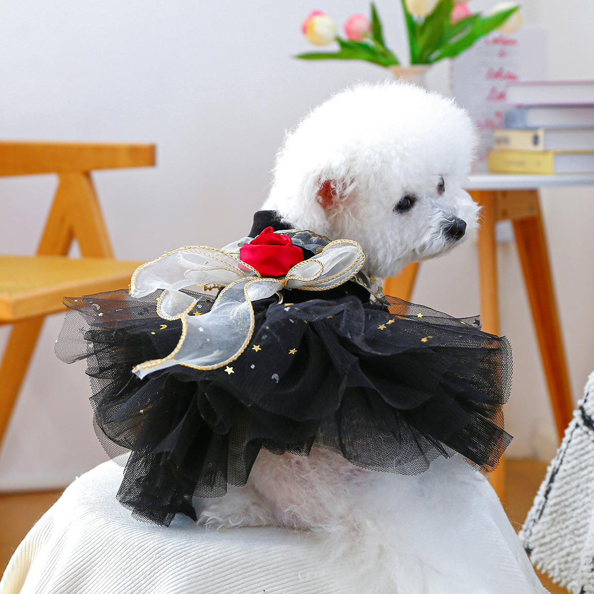 What truly sets this dress apart is the attention to detail. The soft velvet rose skirt adds a luxurious feel, while the shimmering sequins catch the light beautifully. Floral and butterfly decorations give the dress a whimsical, fairy-tale charm that stands out from ordinary pet clothing. It is perfect for pet parents who want something unique, elegant, and memorable.