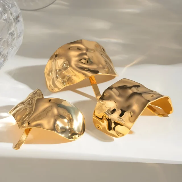 Elevate your hairstyle with this stunning gold plated geometric convex hammered hairpin. Crafted from premium stainless steel, this glossy hair fork blends modern elegance with vintage charm. Its sleek hammered texture catches the light beautifully, while the warm golden finish adds a luxurious touch to any outfit. Designed for both everyday sophistication and special occasions, this accessory instantly transforms your look with effortless grace.