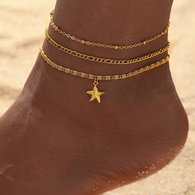 Elegant Starfish Triple Chain Stainless Steel Anklet for Women