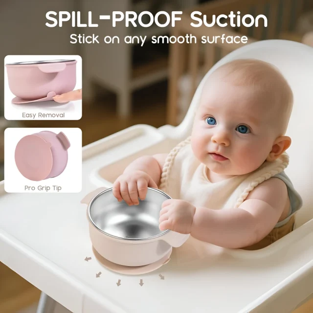 Crafted from premium stainless steel and encased in a soft silicone sleeve, this bowl is made to last through every toss, tumble, and temperature change. It’s heat-resistant and drop-proof, making it a must-have for busy parents who want reliability and safety in one. With its powerful suction cup base, it stays firmly in place—no more sliding, tipping, or spilling during meals.