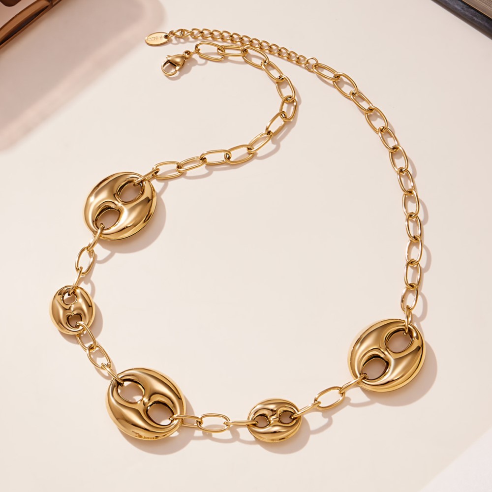 This necklace is crafted from high-quality stainless steel, ensuring it is both waterproof and resistant to tarnish. The link chain design provides a lightweight yet durable structure that maintains its shape and shine over time. Unlike ordinary fashion necklaces, this piece is built to last, allowing you to wear it every day without worrying about wear and tear. Its comfortable collar length rests gracefully around the neck, making it perfect for layering or wearing solo as a statement piece.