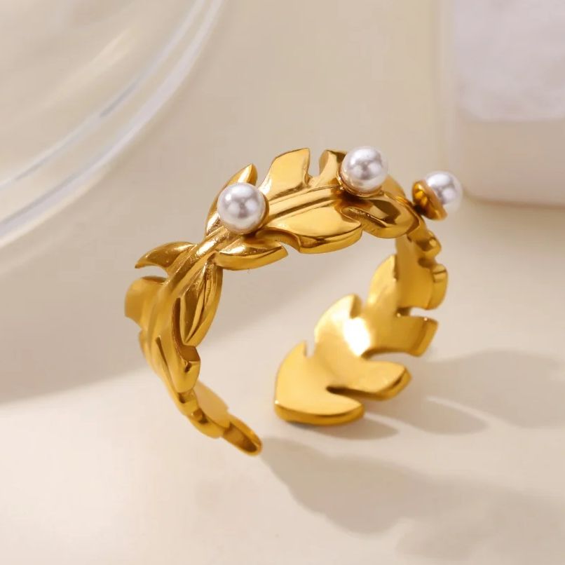 The Stainless Steel 18K Gold Plated Leaf Pearl Open Ring stands out for its distinctive, fashionable design and premium materials. The combination of geometric elements and delicate pearls creates a contemporary look with a hint of natural elegance. Its versatile style means it pairs beautifully with both casual and formal outfits. Plus, the adjustable fit makes it comfortable for daily wear without compromising on style.