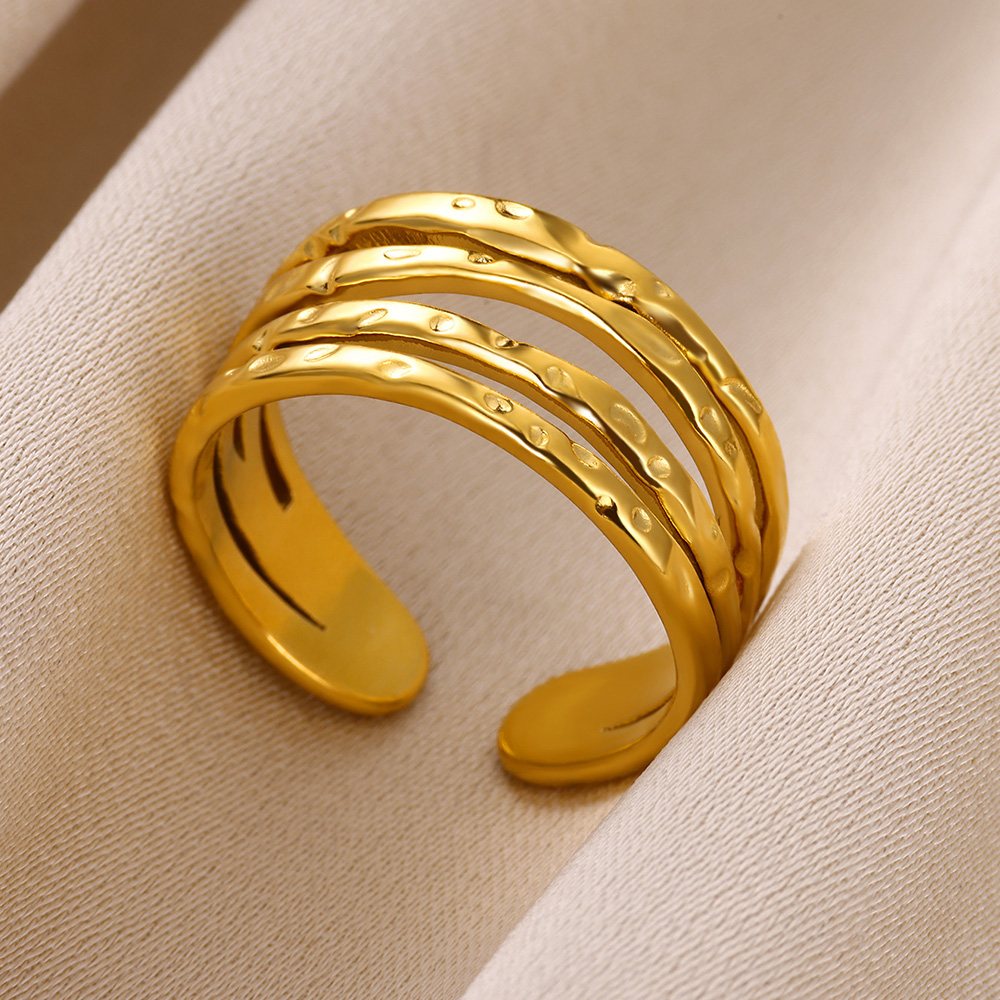 Gold Stainless Steel Multi-Layer Hollow Ring – Unisex Geometric Band